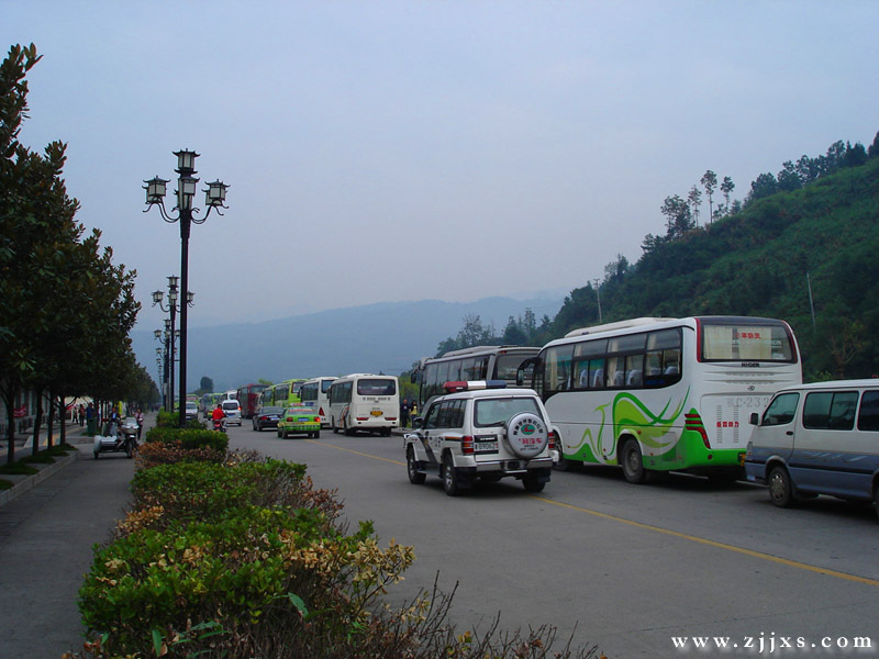 (武陵源大道上自駕車(chē)在交警的指輝下,有序停靠)