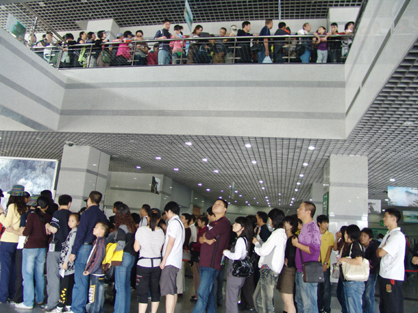 在索道下站,天門山景區(qū)特別組織工作人員現場協調游客排隊等候,并開放了中央空調給游人一個舒適的候車環(huán)境,現場秩序一片井然。