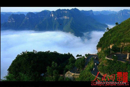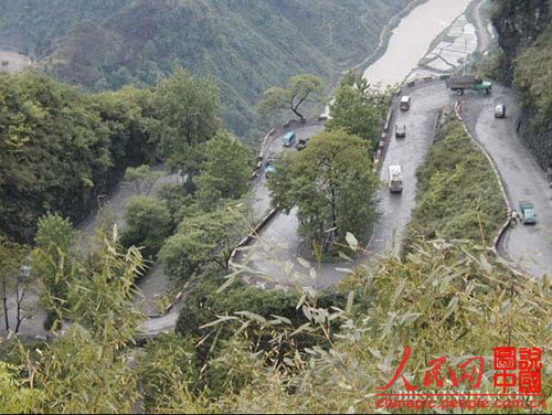 由于這是湖南西部連接重慶的國(guó)道,盡管道路是盤旋在懸崖絕壁而上,但車流量很大,路面損壞、堵車經(jīng)常發(fā)生。大型車輛,司機(jī)沒膽量和沒過硬的技術(shù)是不敢走這一路段的。