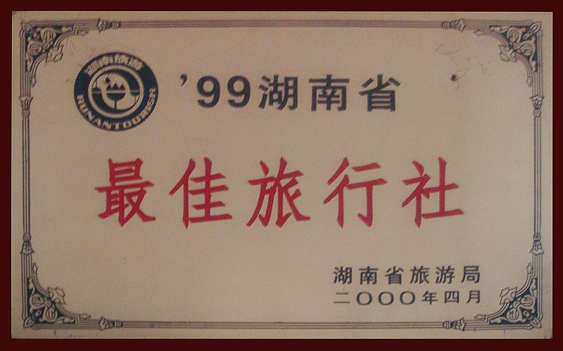 3、2000年4月份被湖南省旅游局評為《1999年湖南省最佳旅行社》
