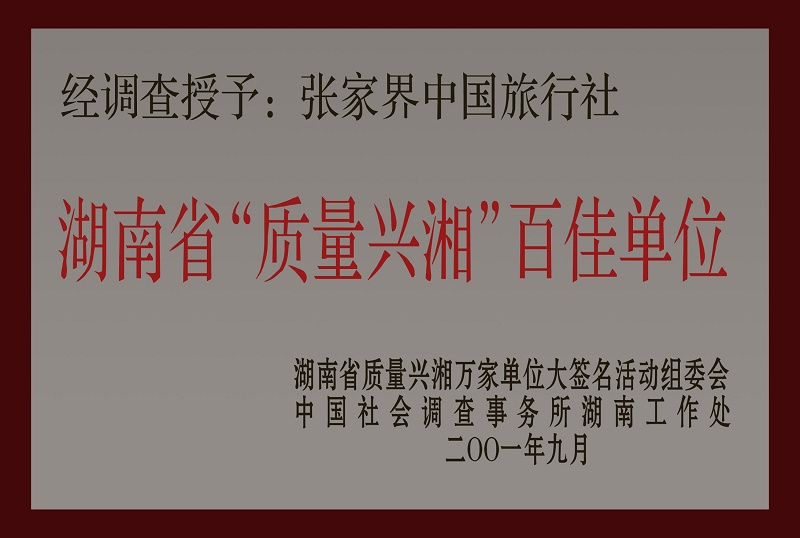 4、2001年9月被湖南省質(zhì)量興湘萬家單位大簽名活動組委會、中國社會調(diào)查事務(wù)所湖南工作處授予《湖南省"質(zhì)量興湘"百佳單位》