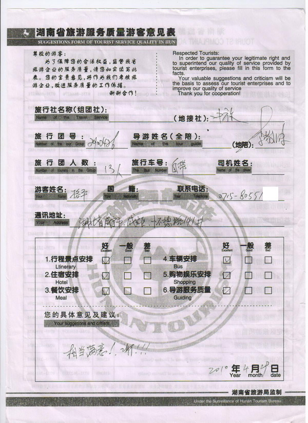咸寧駱平一行12人旅游質(zhì)量回饋:相當(dāng)滿意,謝!