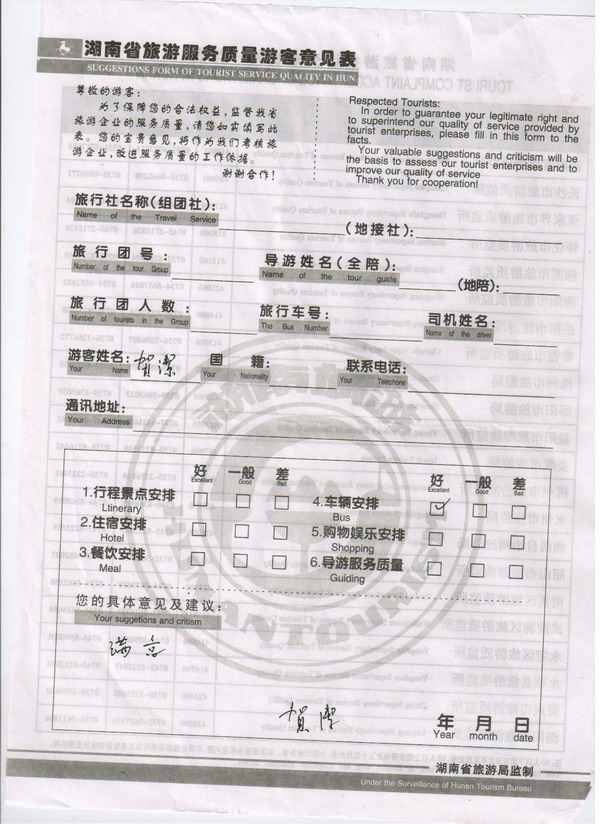 臺(tái)灣賀潔一行6人旅游質(zhì)量回饋