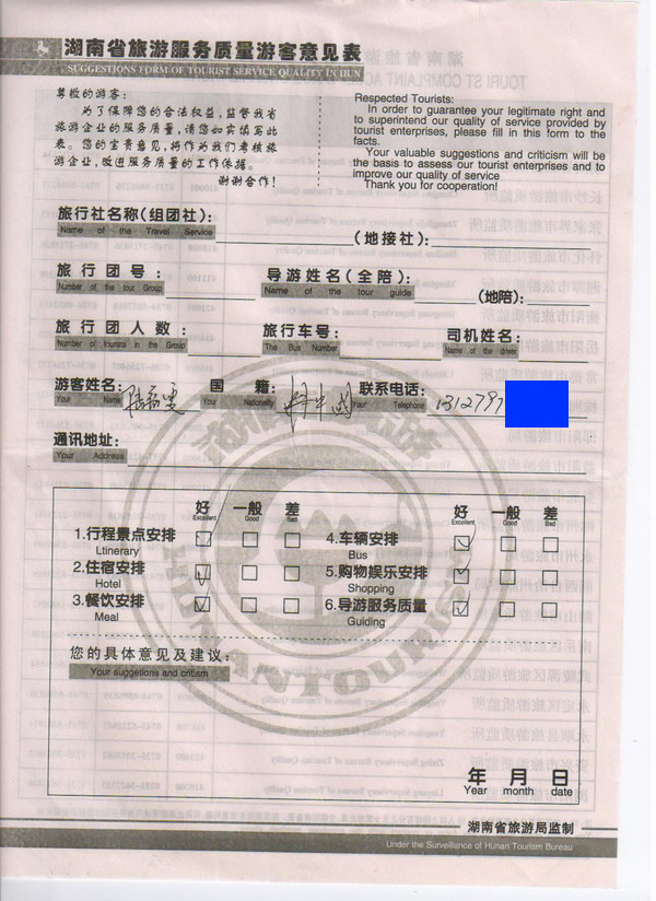 上海陸女士一行8人旅游質(zhì)量回饋: