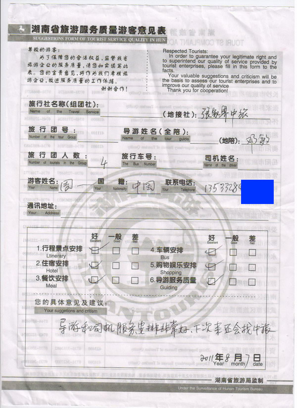 廣州周先生一行4人旅游質(zhì)量回饋: