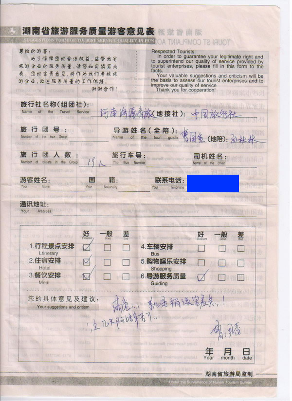 河南濟源青旅一行19人旅游質(zhì)量回饋