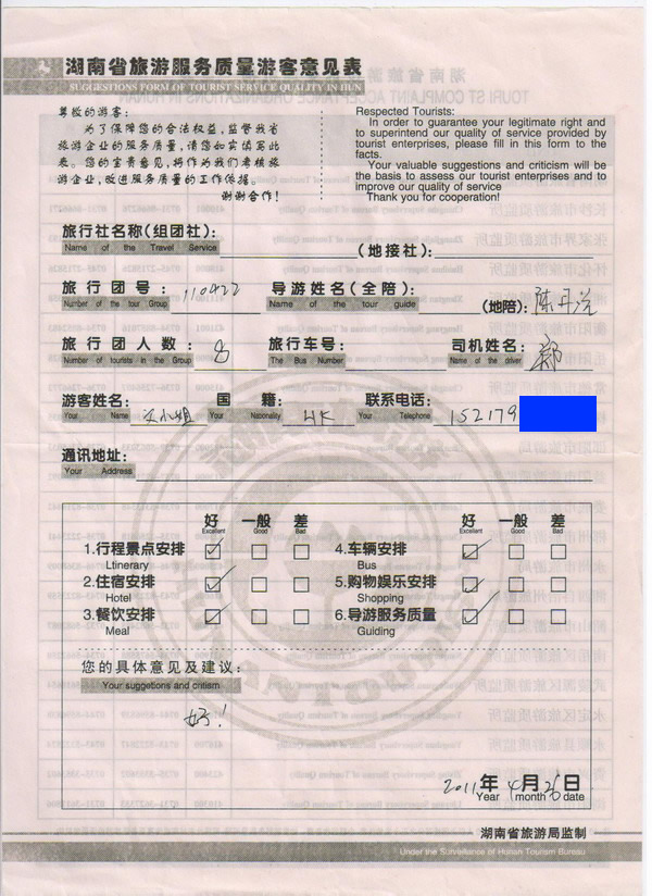 廣州文小姐一行8人旅游質(zhì)量回饋