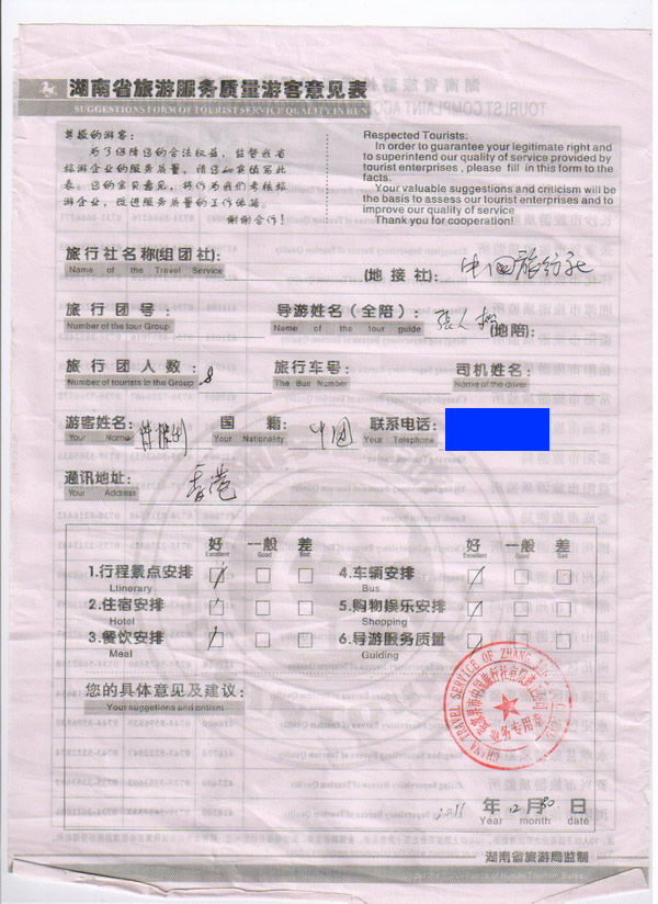 香港陳先生一行8人旅游質量回饋