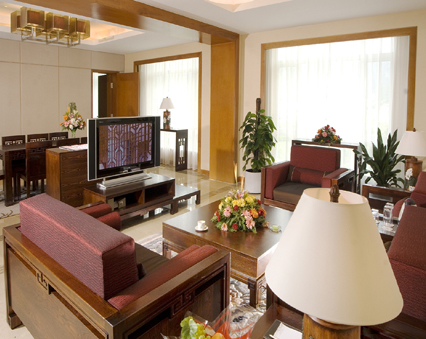 大使套房:面積153平方米,由一個客廳、一書房和兩個臥室組成,所有房間都可看到百丈峽風光。