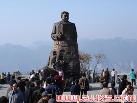 賀龍?jiān)獛浭侵腥A人民共和國(guó)的開國(guó)元?jiǎng),人民解放軍的締造者之一。他就出生在天子山西邊桑植縣洪家關(guān)的一個(gè)農(nóng)民家庭,從兩把菜刀砍鹽局首義起,一生充滿傳奇色彩,元帥家鄉(xiāng)流傳著無數(shù)關(guān)于他的故事與傳說。天子山一帶,曾經(jīng)是賀龍、任弼時(shí)、肖克、王震等將軍打過游擊的地方。一回,賀龍?jiān)阼尮乃幻駡F(tuán)包圍了,當(dāng)?shù)乩习傩占敝猩牵奄R龍卷在斗墊里,躲過了殺身之禍。這個(gè)故事至今還在這一帶流傳。 |