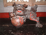【中堂講解】現(xiàn)在您所走進的是傳統(tǒng)土家建筑的第一間房子,我們稱之為中堂或者堂屋。堂屋是個莊重.講禮的地方,祭祀,婚葬嫁娶一類的大事都要在這兒興行。堂屋正中是神龕,一般土家都得供奉相當(dāng)豪華精致的神龕,最上面雕的是二龍戲珠,兩邊是丹鳳朝陽,中間是福壽祿三星高照,土家人早晚都在這里朝拜。湘西土家人是多神論的,雖然沒有自己正式的宗教,但是有一定雛形的由巫師主持的原紿教——土老司。土家的土老司為”梯瑪“。做土老司的主要內(nèi)容就是祭祀土王,敬奉土家祖先。如果您有興趣,也可以在這兒 下您的心愿,接受土家神靈的庇護,拜上拜一拜,保您心想事成同,健康長壽。