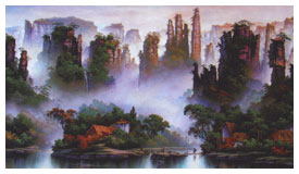 此畫做工之獨(dú)特,藝術(shù)性之高,都堪一絕。原料均為沙石、樹皮、芭茅桿、竹筍殼、或碎布片。用此材料作畫所表現(xiàn)的武陵山水風(fēng)光、湘西的古寨風(fēng)情,栩栩如生 ,即有山水的效果,又有國畫的神韻,因此它一被推出便引起轟動(dòng),受到國內(nèi)外眾人所注。