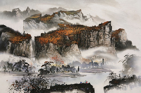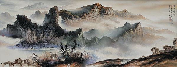 2004年,人民大會(huì)堂收藏李軍聲的砂石畫(huà)《巍巍天門(mén)》。