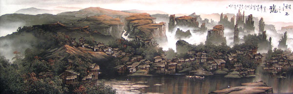 湘西土家族畫(huà)家李軍聲的砂石畫(huà),在當(dāng)代中國(guó)多元發(fā)展的畫(huà)壇上領(lǐng)異標(biāo)新,別具一格,曾受到張仃等老畫(huà)家的獎(jiǎng)掖和國(guó)內(nèi)外許多觀眾的贊賞。 李軍聲的砂石畫(huà)屬于一種綜合材料藝術(shù)。拼貼(collage)或綜合材料(mixed media)是西方現(xiàn)代藝術(shù)常用的媒介。20世紀(jì)初,畢加索等西方現(xiàn)代畫(huà)家就已開(kāi)始嘗試用各種材料在畫(huà)布上拼貼。20世紀(jì)中葉,法國(guó)畫(huà)家迪比費(fèi)(Dubuffet)曾用沙子、泥土、石膏、膠、瀝青等材料涂沫畫(huà)布表面;西班牙畫(huà)家塔皮埃斯(Papies)也曾用沙土、熟石灰、膠等混合材料作畫(huà);美國(guó)畫(huà)家波洛克(Pollock)受到印第安土著居民的“沙畫(huà)”的啟發(fā),把攙雜沙子、玻璃碎片等材料的油彩滴流在畫(huà)布上。這些都是典型的西方現(xiàn)代綜合材料藝術(shù)。不過(guò),李軍聲的砂石畫(huà),并非對(duì)西方現(xiàn)代綜合材料藝術(shù)的挪用和模仿,而是他憑借自己的審美感悟發(fā)現(xiàn)和創(chuàng)造的一種獨(dú)特的綜合材料藝術(shù),是中國(guó)本土土生土長(zhǎng)的一種現(xiàn)代藝術(shù)。李軍聲也許并不了解迪比費(fèi)、塔皮埃斯、波洛克等西方現(xiàn)代畫(huà)家,但他創(chuàng)造的砂石畫(huà)卻取得了與西方現(xiàn)代畫(huà)家的綜合材料藝術(shù)異曲同工的視覺(jué)效果,而且更富有中國(guó)本土特別是湖南張家界本地的藝術(shù)特色。砂石畫(huà) [1]李軍聲,這位用砂石書(shū)寫(xiě)傳奇的人,1994年在北京中國(guó)美術(shù)館成功舉辦了個(gè)人砂石畫(huà)展;1999年,砂石畫(huà)《武陵山水甲天下》被昆明世博會(huì)中國(guó)館珍藏;2000年,砂石畫(huà)《古城》榮獲第三屆中國(guó)工藝美術(shù)精品博覽會(huì)金獎(jiǎng);2003年砂石畫(huà)《風(fēng)景》被中南海收藏;2004年砂石畫(huà)《風(fēng)景再現(xiàn)》參加法國(guó)“巴黎.中國(guó)書(shū)畫(huà)展”,《武陵之魂天門(mén)山》被國(guó)家貿(mào)促會(huì)作為2005年日本國(guó)際世博會(huì)中國(guó)館接待廳唯一繪畫(huà)作品陳列收藏。他的藝術(shù)成就被海內(nèi)外眾多媒體專(zhuān)題報(bào)道,他的名字被收入多部名人典籍。 李軍聲創(chuàng)造的砂石畫(huà),大膽突破傳統(tǒng)繪畫(huà)用材,利用自然植物的色相創(chuàng)造性地衷用自然,極具藝術(shù)價(jià)值與收藏。他說(shuō)過(guò):“一件精美的藝術(shù)品不受材料和技巧的束縛,而取決于創(chuàng)作者的心靈感悟”。軍聲畫(huà)院和軍聲砂石畫(huà)就是這樣一處閃爍在張家界自美景中的,獨(dú)具藝術(shù)魅力的人文景觀。