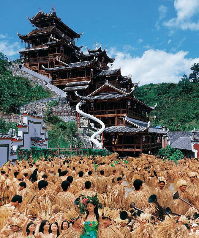 張家界土司城,南倚天門,北靠澧水,永定第末代土司覃純一被朝廷封為世襲千總后建造,距今近三百年歷史,是西南地區(qū)唯一保存完好的古城。土司城占地120多畝,集吊腳樓群,走馬轉角樓群為一體,是土家族古代文明的發(fā)祥地和凝聚地。城內遺存著大量的珍貴文物,素有“南方紫禁城”之稱。2002年建筑奇觀“九重天吊腳樓”和“千人茅古斯”一并載入世界吉尼斯紀錄。2003年被列入了國家AAAA級景區(qū)、張家界旅游精品線路。是來張家界考察的國家領導人和藝術界人士的必到之處。很多專家學者參觀土司城后紛紛感慨“不到土司城、不懂土家人”。